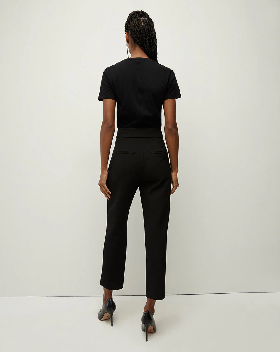 Essential in any wardrobe. The Cindy short-sleeve T-shirt is crafted from 100% Pima cotton for exceptional softness, making it a true capsule piece you'll reach for again and again. Featuring a deep V-neckline and a tonal binding finish, this elevated black tee is versatile enough to style with anything—pair it with jeans or layer under a tailored jacket.