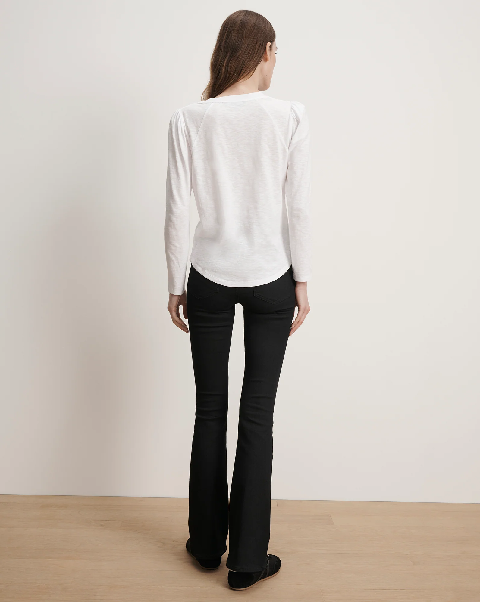 A home run. Mason is an elevated take on the classic baseball tee, featuring subtly puffed shoulders for a feminine twist. Cut for a relaxed, easy fit, it's crafted from 100% Pima cotton for an exceptionally soft feel and finished with three-quarter sleeves and a classic crew neckline. Style it with dark skinny denim and boots for an effortless, polished look.