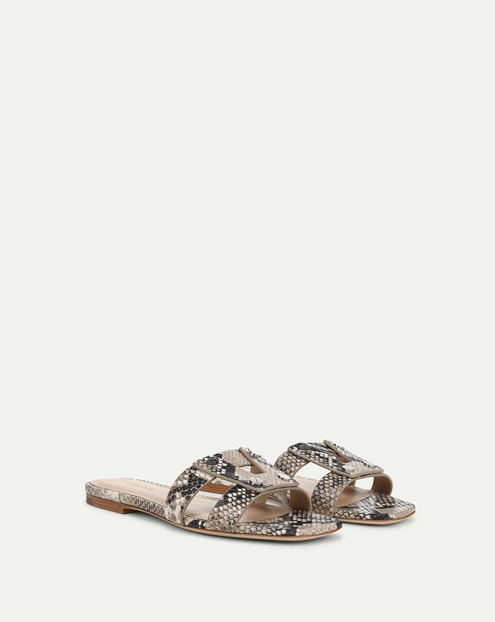 The quintessential sandal every wardrobe needs. Expertly crafted from snake-embossed leather in neutral tones, the Via open-toe slide features a minimal multi-strap silhouette, punctuated with silver hardware. Polished yet effortless, it pairs seamlessly with everything—from day to night, week to weekend.